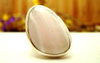 Belle et original bague en argent avec une pierre indienne Agate blanche, Un bijou en provenance de l'Inde, sélectionné par nos soins auprès de bijoutiers locaux.