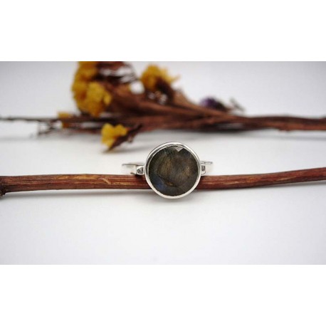 Bague indienne argent massif et pierre semi précieuse Labradorite provenance directe de l'Inde. Comme pour tous nos bijoux, l'argent est poinçonné 925/1000e par le fabricant, puis contrôlé et poinçonné par nos soins.