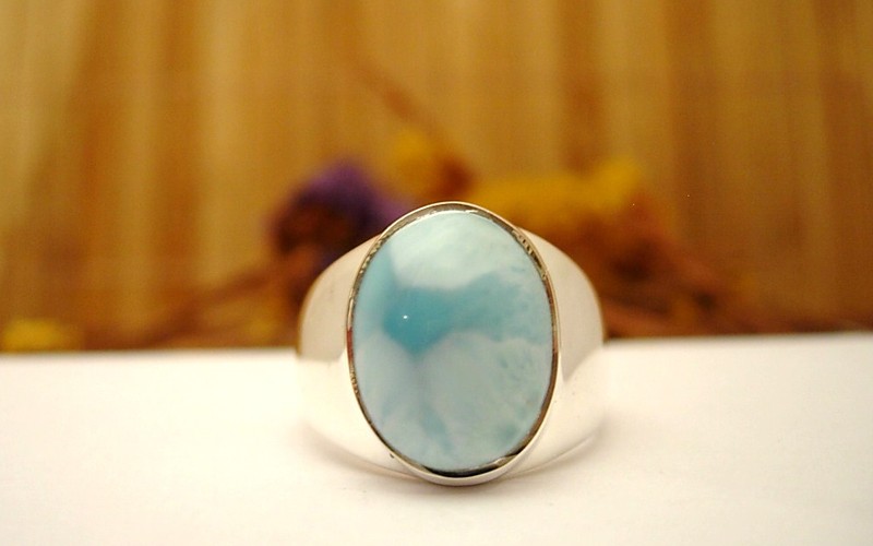 Bague indienne en argent massif et pierre semi précieuse Larimar de qualité. Très beau bijou en provenance de l'Inde, sélectionnée par nos soins.