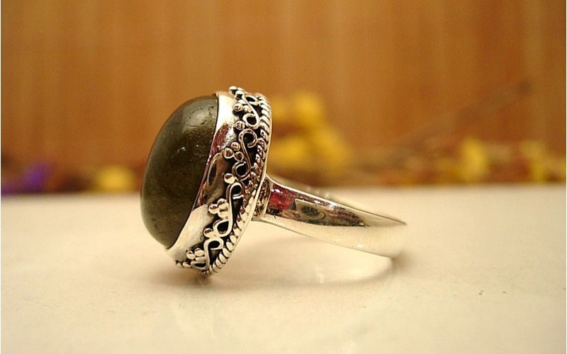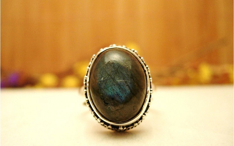 Bague indienne en argent avec pierre semi précieuse Labradorite de qualité. Très beau bijou en provenance de l'Inde, sélectionnée par nos soins.
