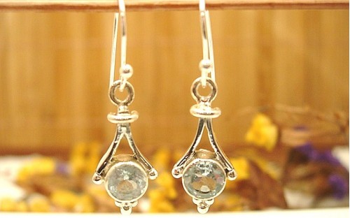 Boucles d'oreille en argent massif et pierre semi précieuse Topaze bleu, en provenance directe de l'Inde. Comme pour tous nos bijoux, l'argent est poinçonné 925/1000e par le fabricant, puis contrôlé et poinçonné par nos soins.