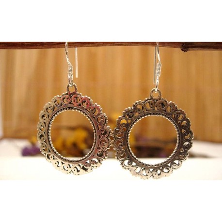 Boucle d'oreilles indiennes en argent massif 92.5, Très beau bijou indien artisanal, en provenance directe l'Inde, sélectionné et contrôlé par nos soins.