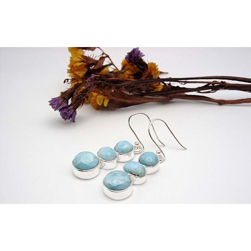Boucles d'oreille en argent en argent massif et larimar en provenance directe de l'Inde. Comme pour tous nos bijoux, l'argent est poinçonné 925/1000e par le fabricant, puis contrôlé et poinçonné par nos soins.