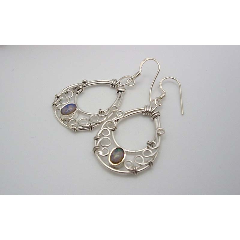 Boucles d'oreille en argent en argent massif et Pierre semi précieuses Opale, en provenance directe de l'Inde. Comme pour tous nos bijoux, l'argent est poinçonné 925/1000e par le fabricant, puis contrôlé et poinçonné par nos soins.