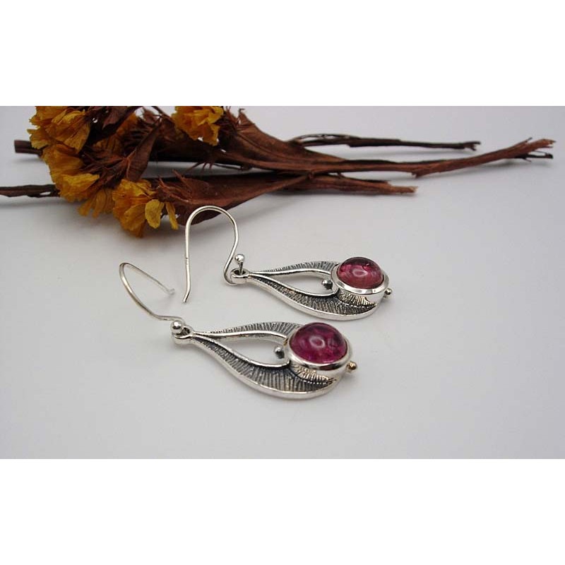 Boucles d'oreille en argent en argent massif et Pierre semi précieuses Tourmaline rose, en provenance directe de l'Inde. Comme pour tous nos bijoux, l'argent est poinçonné 925/1000e par le fabricant, puis contrôlé et poinçonné par nos soins.