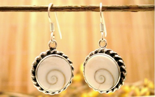 Boucles d'oreilles en argent avec Oeil de shiva , en provenance directe de l'Inde. Comme pour tous nos bijoux, l'argent est poinçonné 925/1000e par le fabricant, puis contrôlé et poinçonné par nos soins.