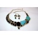 | Pierre | topaze bleu,onyx noire facettes et turquoise. |