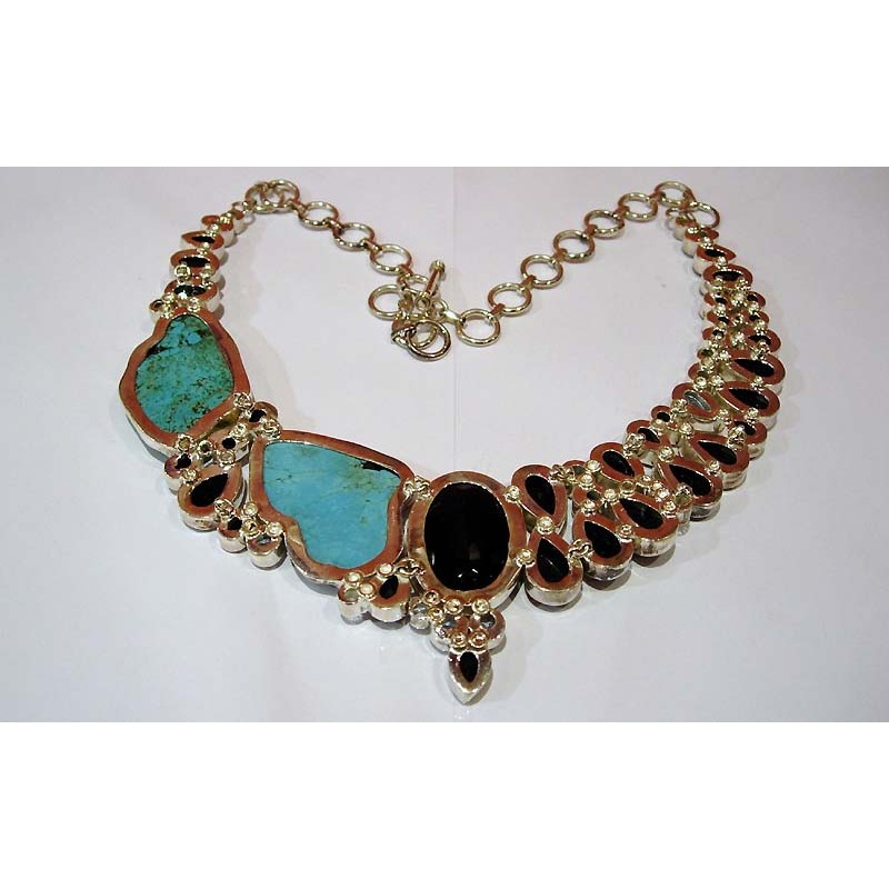Très belle Collier indien en argent avec pierres semi-précieuses Multicolore. Un bijou fabriqué artisanalement en Inde, sélectionné et importé par nos soins auprès d'un bijoutier local.