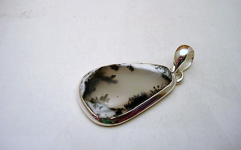 Pendentif en argent avec pierre semi-précieuse Dendrite opale, en provenance directe de l'Inde. Comme pour tous nos bijoux, l'argent est poinçonné 925/1000e par le fabricant, puis contrôlé et poinçonné par nos soins.