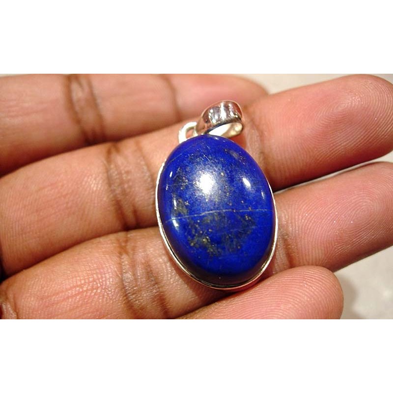 Pendentif indien en argent avec très belle pierre Lapis lazuli. Un bijou en argent rapporté d'Inde et vérifié par nos soins.
