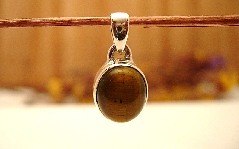 Pendentif indien en argent avec pierre semi précieuse Oeil de tigre. Un bijou sélectionné en Inde par nos soins, auprès de bijoutiers et designers locaux.