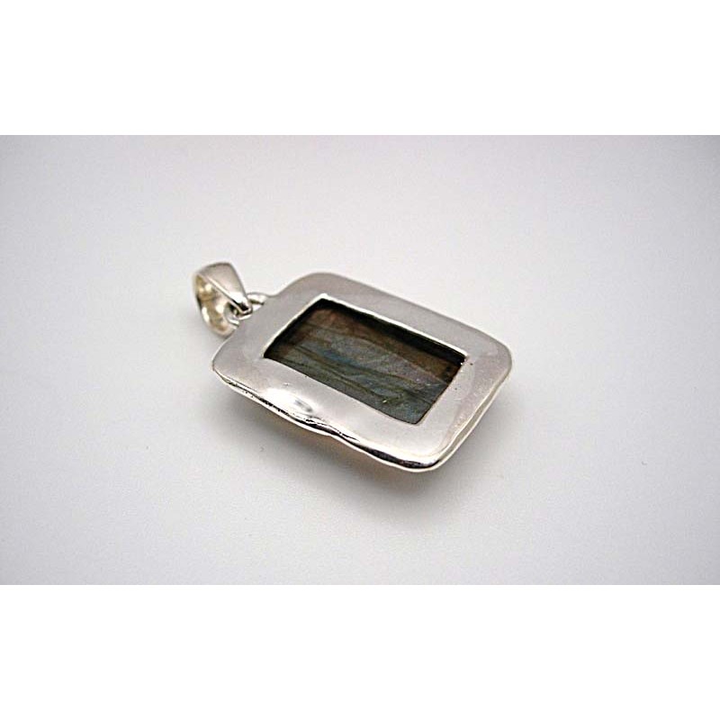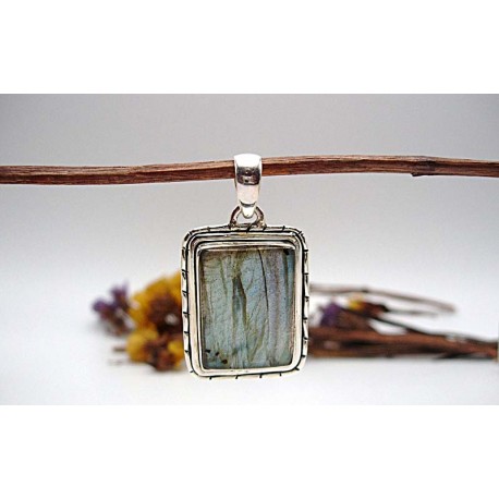 Pendentif en argent avec pierre semi-précieuse Labradorite, en provenance directe de l'Inde. Comme pour tous nos bijoux, l'argent est poinçonné 925/1000e par le fabricant, puis contrôlé et poinçon.