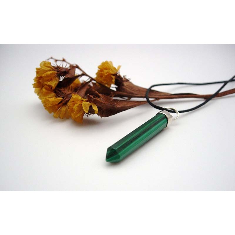 Pendentif en argent avec pierre semi-précieuse Malachite en provenance directe de l'Inde. Comme pour tous nos bijoux, l'argent est poinçonné 925/1000e par le fabricant, puis contrôlé et poinçon.